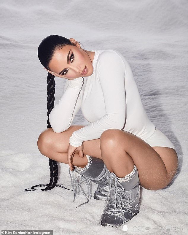 除了扔雪球的视频,金还分享了一张自己露出修长双腿,惬意的蹲在雪地上的照片。照片上的金妆容精致,标志性的大长辫子直垂到雪地。